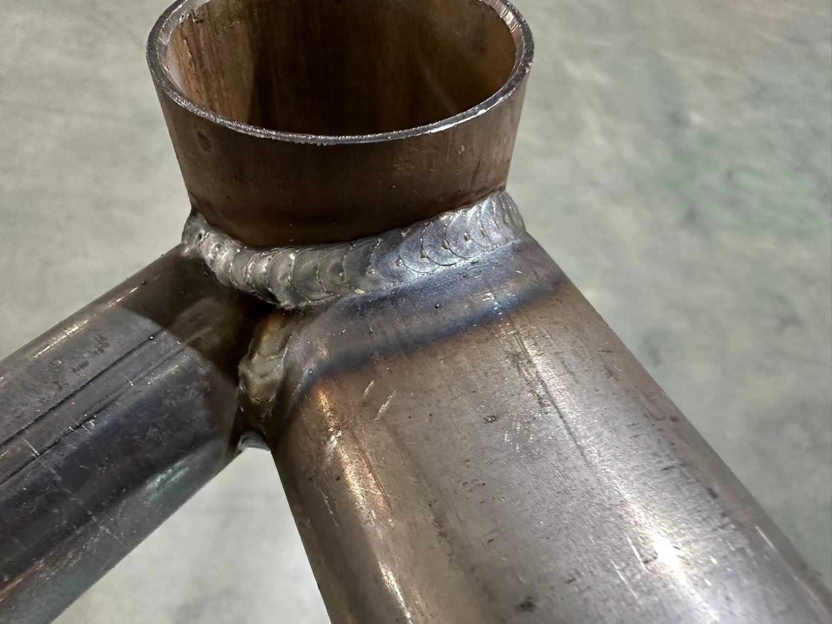Y客户提供的焊接材料是碳钢材质管件,要求做鱼鳞焊焊接工艺,车架前三角焊接