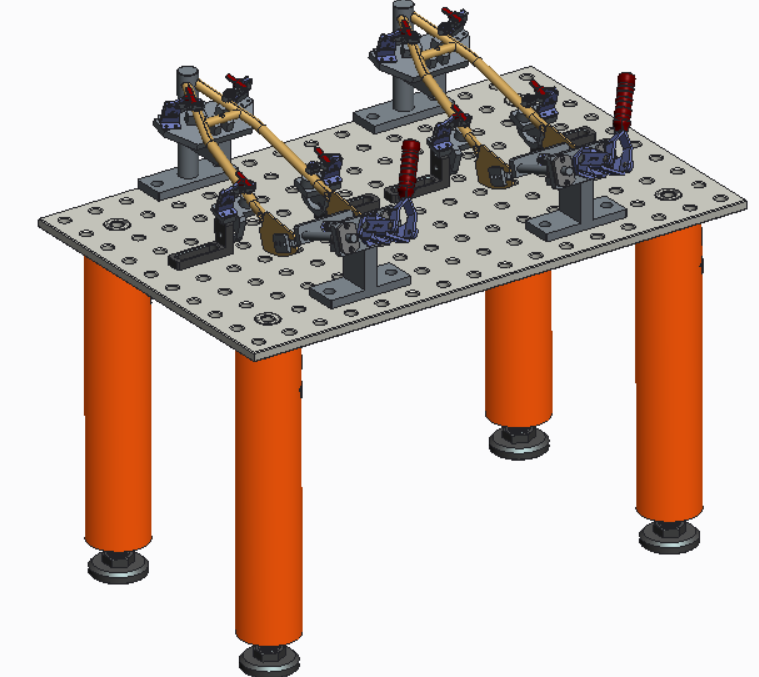 科泰三维柔性万能组合工装夹具是为自行车和童车车架前三角焊接工艺特别设计的模块化工装系统。